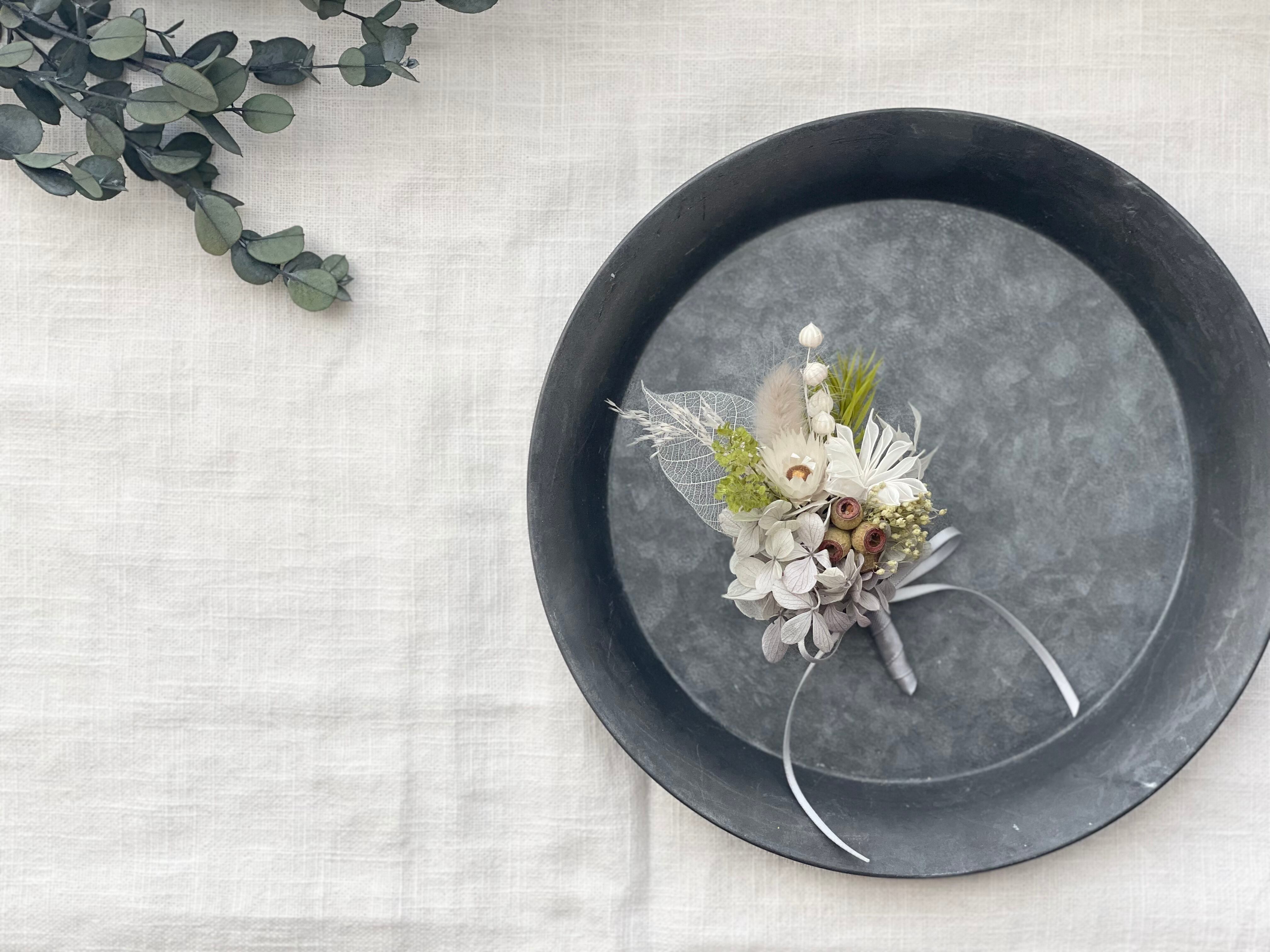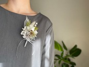 ブルーグレーとグリーンを使ったプリザーブドフラワーのコサージュです。